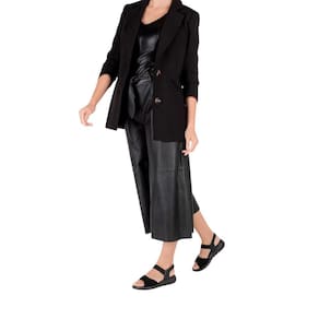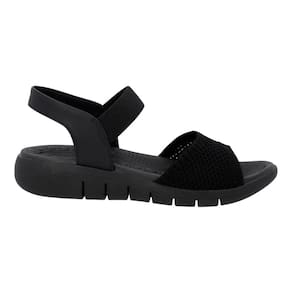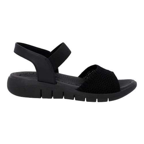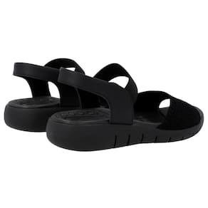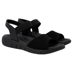 A sandália Usaflex, modelo UC08005, é confeccionada em tecido tricot preto e couro napa valise, apresentando um design confortável com tecnologia Extra-Form e palmilhas especiais que se ajustam aos pés, ideal para uso casual. Possui um salto baixo de 3,5 cm e fechamento em elástico. A sandália possui cabedal em tecido tricot e couro napa valise na cor preta. O modelo integra a tecnologia Extra-Form para um ajuste ideal aos pés. A altura do salto é de 3,5 cm, classificado como baixo e sem salto aparente. O fechamento da sandália é feito por elástico, facilitando o calce. É ideal para ocasiões casuais.