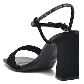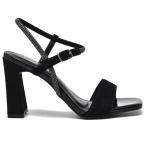 Sandália Via Marte Salto Bloco Tira Strass Bico Quadrado 23-18305 - 39 - Preto