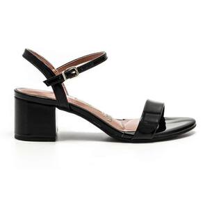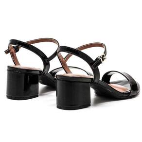 Sandália feminina confeccionada em material verniz, salto baixo grosso e fechamento por tira com fivela ajustável. Possui palmilha com alta absorção de impacto e umidade, solado flexível, emborrachado com frisos antiderrapante para garantir maior segurança e conforto ao caminhar.