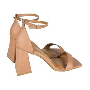 Sandália Vizzano Salto Bloco Médio Geométrico - 34 - Bege Claro