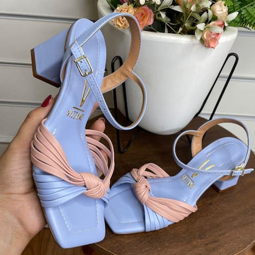 Sandália com detalhes em tiras e nó, confortavel, salto bloco geométrico. Sandália super versátil, indicada para diversos tipos de ocasiões.