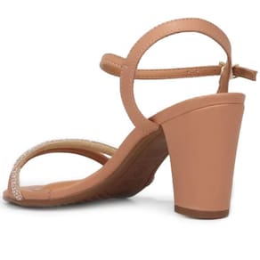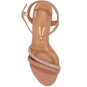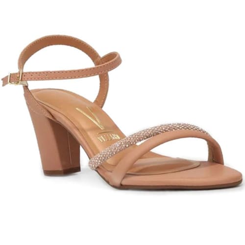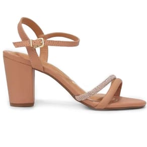 Sandália Vizzano Tiras Strass Salto Médio - Nude - 37 - Bege Claro