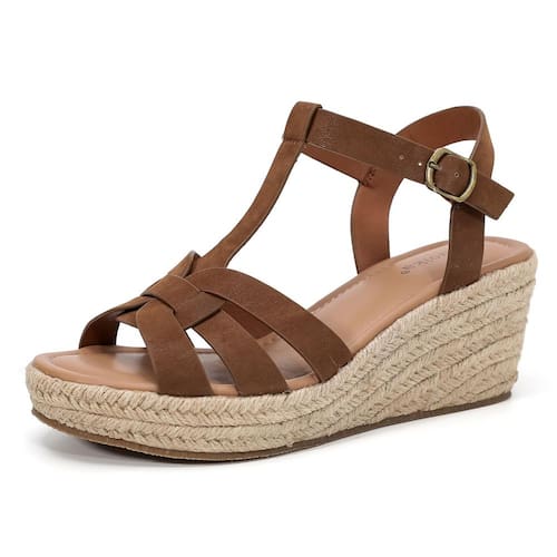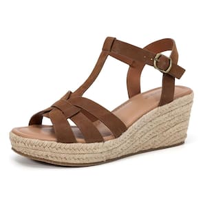 Luoika Sandálias femininas de largura larga, plataforma com tira no tornozelo, bico aberto, alpargata, salto alto, sandálias femininas concisas casuais de verão., Marrom 001 - Design de largura extra larga – Projetado com uma largura extra larga, estas sandálias são 12% mais largas do que os tamanhos regulares, oferecendo um ajuste perfeito para mulheres com pés mais largos. Diga adeus ao beliscar e olá ao conforto. - Design de salto elegante e funcional – Com um salto plataforma de 8 cm e uma plataforma de 3,8 cm, estas sandálias são perfeitas para alongar suas pernas enquanto proporcionam estabilidade. Os detalhes modernos da alpargata adicionam um toque de sofisticação ecológica à sola TRP, que é durável, antiderrapante e feita para durar. - Conforto máximo com espuma viscoelástica de camada dupla – Desfrute de conforto duradouro com palmilhas de espuma viscoelástica de camada dupla que amortecem seus pés para uso durante todo o dia. Se você estiver de pé no trabalho ou dançando a noite toda, seus pés se sentirão apoiados e livres de fadiga. - Material superior macio e ajustável – o cabedal de couro sintético macio é amigo da pele, resistente ao desbotamento e projetado para qualidade duradoura. A tira ajustável no tornozelo acomoda tornozelos mais largos, garantindo um ajuste seguro e confortável com um toque de elegância. - Versáteis para qualquer ocasião – perfeitas para trabalho, encontros, festas, casamentos e muito mais, estas sandálias combinam facilmente com vestidos, roupas de negócios ou jeans casuais, tornando-as uma escolha ideal para uma variedade de roupas e ocasiões.