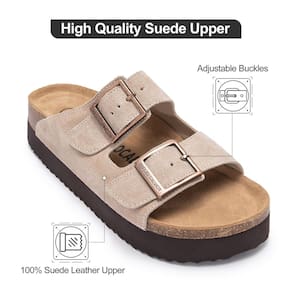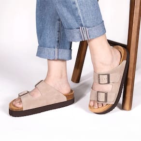 - Cabedal de camurça: estas sandálias plataforma apresentam 100% couro de camurça, oferecendo durabilidade e uma sensação agradável à pele, tornando-as ótimas para qualquer atividade interna ou externa
