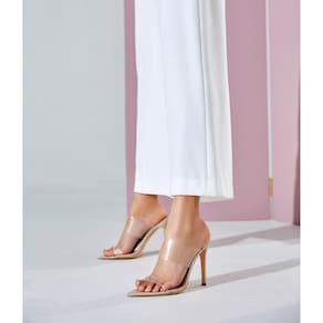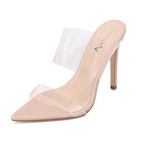 - Mulas de bico aberto e salto sem cadarço, projetadas para proporcionar conforto e estilo. Slides transparentes de salto alto com tiras são indispensáveis no guarda-roupa de qualquer fashionista, exalando amor pela moda.