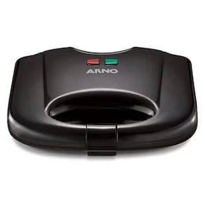 Sanduicheira Arno Compacta com placas antiaderentes, 700W de potência, alça fria e luz indicadora de preparo.Funciona como grill