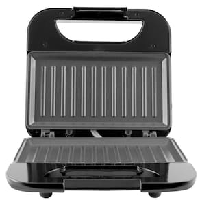 Placas onduladas com revestimento antiaderente; Faz 2 sanduiches de uma so vez; Grelha hamburgueres, carnes, peixes e vegetais; Luz indicadora de funcionamento (vermelha); Luz indicadora de aquecimento (verde); Trava de fechamento; Base antiderrapante; Pode ser guardado na posicao vertical; Alca para ; Porta-fio.Porta-fio
