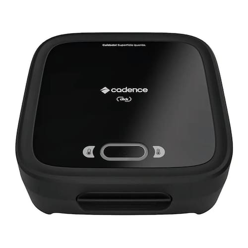 Descricao Sanduicheira Eletrica Cadence Click | SAN400A Sanduicheira Click tem um design unico e formato inovador. E a companheira bancada para fazer de tudo um pouco!Nao precisa tirar da Liga/Desliga com LEDs indicadoresPes firmesA sanduicheira nao Antiaderentes + Profundas80%* + ESPACO mais +SIMPLES DE LIMPARSuperior grill, Inferior LISINHA!Com a Click, preparar sanduiches deliciosos e so o comeco!Dica de uso:Apenas antes do primeiro uso, unte levemennte as chapas com um pouco de manteiga, oleo ou gordura, feche o aparelho e aguarde esquentar (cerca de 5 min). Retire-o da tomada, espere esfriar e , agora e so usar normalmente quando quiser.*Imagens meramente ilustrativas.Especificacao Tecnica Modelo SAN400-220Tensao 220VPotencia750WConsumo 0,75 KW/hDimensoes [LxAxP] 215x78x223mmGarantia (meses) 12Peso1,310 KgCodigo de barras7898700218824