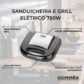 Acompanha o produto:\n - 1 Sanduicheira e Grill ElétricoManual de Instalação\n Garantia:\n - 01 ANOFunciona como grill