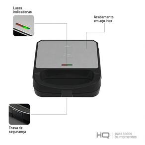 A Sanduicheira HQ-SG001 é perfeita para quem busca praticidade, rapidez e segurança no preparo de lanches e refeições rápidas. Ideal para começar o dia com um sanduíche quentinho ou para aquele lanche no fim do dia, ela se adapta facilmente à rotina e ao espaço da sua cozinha.
