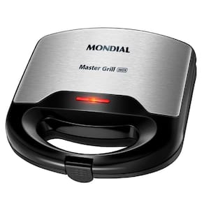 Sanduicheira e Grill Mondial Master S-20 com 750W de potência, design em preto e inox, placas antiaderentes e aquecimento uniforme para pães crocantes e alimentos bem dourados.Funciona como grill