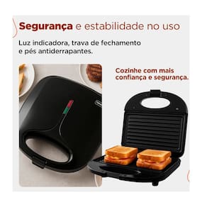 O modelo possui capacidade para dois sanduíches, permitindo que você prepare porções na medida certa.