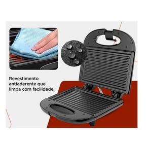Suas placas grill garantem um cozimento uniforme, enquanto o revestimento antiaderente facilita a limpeza, tornando o uso ainda mais conveniente.