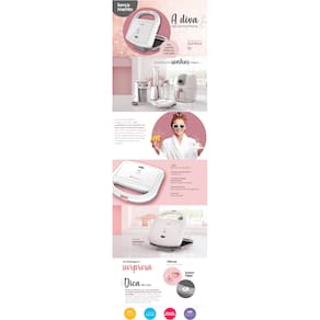 Sua cozinha brilha em rosé A Sanduicheira elétrica chegou para brilhar! Com acabamento em rosé gold, veio fazer uma cozinha dos sonhos. Com visual irresistível e capacidade para dois sanduíches ao mesmo tempo, é perfeita para quem gosta de praticidade e adora decoração. Para grelhar e decorar, Com a sanduicheira elétrica da Cadence você terá um complemento ideal para sua cozinha. Você poderá preparar sanduíches deliciosos.Ficha Técnica:Potência: 750WChapas antiaderentesLimpeza fácilChapas de duplo aquecimentoPreparo rápido e por igualAlça isotérmicaPorta fioLed luminoso e termostatoPés antiderrapantesTrava de segurançaDica de uso: Antes o primeiro uso, unte levemente as chapas antiaderentes com um pouco de manteiga, óleo ou gordura.Largura: 21cmAltura: 21cmProfundidade: 8cm