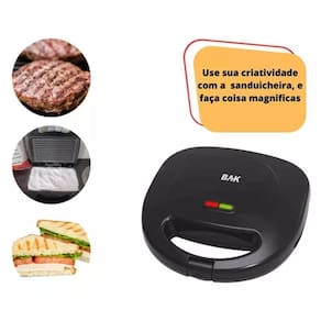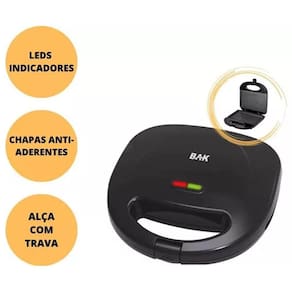 Sanduicheira elétrica antiaderente premium 750w bak 220v, com a sanduicheira elétrica da bak você terá um complemento ideal para sua cozinha. Você poderá preparar sanduíches deliciosos.