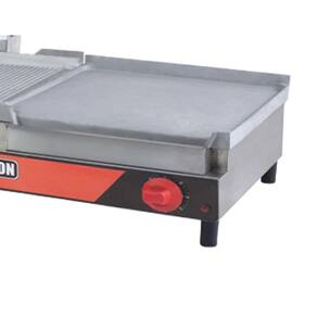 Possui gabinete fabricado em aço inoxidável e placas em alumínio fundido, proporcionando muito mais durabilidade e resistência a chapa de lanche. Conta com uma barreira traseira, evitando que a gordura escorra por trás do equipamento e uma caixa de gordura frontal, permitindo manter a bancada de trabalho limpa e organizada. Além disso, possui controle de temperatura através do termostato que pode chegar a 300C (recomenda-se ajustá-lo para no máximo 150C afim de economizar energia elétrica e aumentar a vida útil dos componentes).