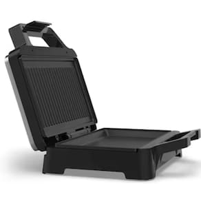 Potência 1000W. Chapas antiaderentes (superior ondulada e inferior lisa). Botão On/Off com luz indicadora de funcionamento. Alça isotérmica. Porta-fio na base. Pés reforçados. Base estável.Funciona como grill