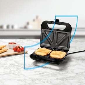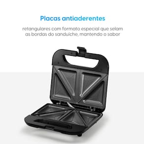 -Função 2 em 1: Prepara sanduíches e pequenos grelhados; -Sistema de Aquecimento: Duplo, um para cada placa, garantindo cozimento uniforme; -Placas Antiaderentes: Facilita a limpeza e proporciona praticidade; -Alças com trava de fechamento e empunhadura ergonômica; -Base antiderrapante e proteção contra superaquecimento; -Enrolador de fio na base traseira.Funciona como grill