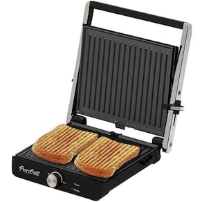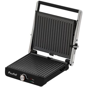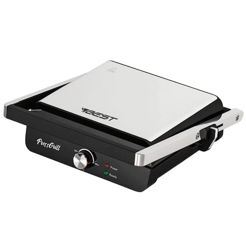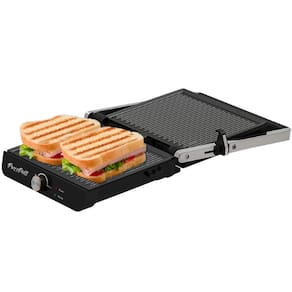 Sanduicheira grill com 1200W de potência, placas antiaderentes, trava de segurança, luz indicadora de funcionamento, recipiente coletor de gordura removível.Funciona como grill