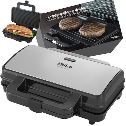 * **Qual a potência da sanduicheira?** A sanduicheira Philco PGR02I possui 900W de potência.