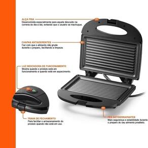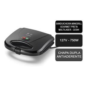 Se você está procurando uma opção fácil e prática de preparar seus lanches ou até mesmo grelhar vegetais, carnes, peixes ou frangos, esta é a opção ideal. Compacta, a sanduicheira e minigrill da linha Multilaser Gourmet tem o tamanho ideal para suas necessidades. Com 750W de potência, ela prepara até 2 porções. Lanches mais gostosos e sem grudar. A grill e sanduicheira Multilaser é antiaderente e permite a preparação dos alimentos sem fazer com que ele grude em sua superfície. O preparo ainda pode ser feito sem óleo, resultando em mais saúde e leveza pras suas refeições. Especificações Técnicas: - Cor: Preto- Potência: 750W- Consumo: 0,75 kWh- Aplicação: Grill- Revestimento: Antiaderente- Tensão: 127V- Garantia do Fabricante : 1 Ano