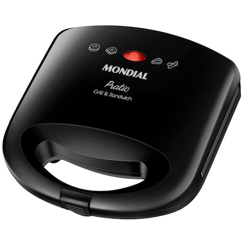 Sanduicheira Grill Mondial SN-01 Pratic 2 em 1 com 750W de potência, grelhas duplas antiaderentes eFunciona como grill