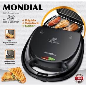 Para que o seu dia a dia seja mais saudável e saboroso, você não pode abrir mão de alguns eletroportáteis que facilitam a sua vida. Faça um hambúrguer completo incluindo o huuuuummmm no final! Hambúrguer artesanal e feito por você! Compacto e ideal para o preparo de um lanche completo! Rapidez e menos tempo no preparo são as chaves para um delicioso hambúrguer. O grill permite grelhar o hambúrguer em poucos minutos enquanto você tosta o banco, o pão e frita o ovo. Sanduicheira Mondial é ideal para você que gosta de alimentação mais saudável sem abrir mão do sabor e rapidez no preparo. Grill com grelhas duplas antiaderentes proporcionando maior facilidade na limpeza, lâmpada piloto indicando o funcionamento, trava de fechamento para maior segurança no preparo dos alimentos, além de preparar rapidamente grelhados, nuggets , legumes e sanduiches e diversas receitas sem necessidade de adição de óleo Com design modero em inox e guarda fio ela tem muita praticidade para armazenar ou compor a decoração.
