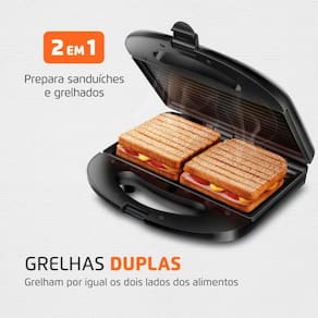 2 em 1 – Sanduicheira e Grill: ideal para grelhar carnes, legumes, peixes e fazer lanches saborosos no dia a dia.