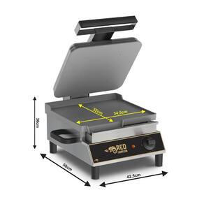 Sanduicheira chapa lisa com caixa de gordura frontal e anteparo traseiro para evitar a queda de resíduos por trás do equipamento, facilitando assim o processo de higienização. A placa tanto superior como inferior em alumínio fundido garante aquecimento rápido e uniforme agilizando e garantindo um preparo perfeito. O limitador de fechamento ajustável evita o esmagamento do sanduiche. Um equipamento profissional para a sua cozinha ou estabelecimento comercial. A temperatura do termostato é ajustada por termostato analógico.