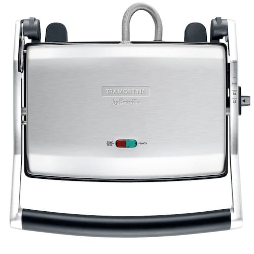 SANDUICHEIRA TRAMONTINA BY BREVILLE EXPRESS EM AÇO INOX FOSCO COM CHAPA FLUTUANTE 127 V 69054011 Marca: Tramontina Modelo: Express em Aço Inox Fosco com Chapa Flutuante 110V 69054011