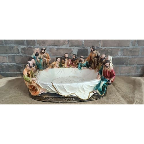 A Santa Ceia de Natal em Bowl Colorido de Resina - Grande 40 cm é uma peça única e sofisticada, perfeita para decorações natalinas que valorizam a espiritualidade e a tradição cristã. Este produto é ideal para revendedores que buscam oferecer itens diferenciados e com grande apelo emocional para a época natalina. Detalhes do Produto: Material: Fabricado em resina de alta qualidade, com um acabamento fino que garante durabilidade e uma apresentação impecável. Dimensões: Com 40 cm de diâmetro, este bowl grande é uma peça de destaque, ideal para mesas, aparadores e altares, proporcionando um impacto visual expressivo. Design Colorido e Detalhado: Apresenta a icônica cena da última ceia, com Jesus e seus doze discípulos esculpidos e pintados em cores vibrantes. O formato de bowl proporciona uma visão única da cena, criando uma peça decorativa impressionante. Versatilidade Decorativa: Este bowl é uma escolha sofisticada para compor decorações em diferentes ambientes, podendo ser utilizado como peça central em mesas de jantar ou altares, além de complementar decorações religiosas e de Natal. Benefícios: Valor Espiritual e Significado: Uma peça que representa a fé cristã e inspira um ambiente de paz e reflexão, perfeita para clientes que valorizam decorações com propósito. Durabilidade e Qualidade: Feita em resina resistente, esta peça é durável, mantendo seu aspecto e beleza ano após ano. Apelo Visual para Revendedores: Com o tamanho e o design exclusivo em formato de bowl, é um item que atrai o interesse de clientes em busca de decorações natalinas elegantes e diferenciadas. A Santa Ceia de Natal em Bowl Colorido de Resina - Grande 40 cm é uma escolha ideal para revendedores que desejam oferecer uma peça exclusiva e significativa. Um item que traz espiritualidade e beleza para as decorações natalinas, ajudando a impulsionar as vendas com uma peça de grande valor decorativo.