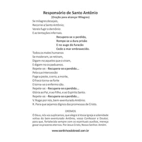 Santinho Responsório de Santo Antônio (oração no verso) - 7x10 cm 500 - Santinhos de Promessa Características Gerais do Produto: • Composição: Couchê Brilho 90 gr • Garantia: Havendo Defeito de Fabricação