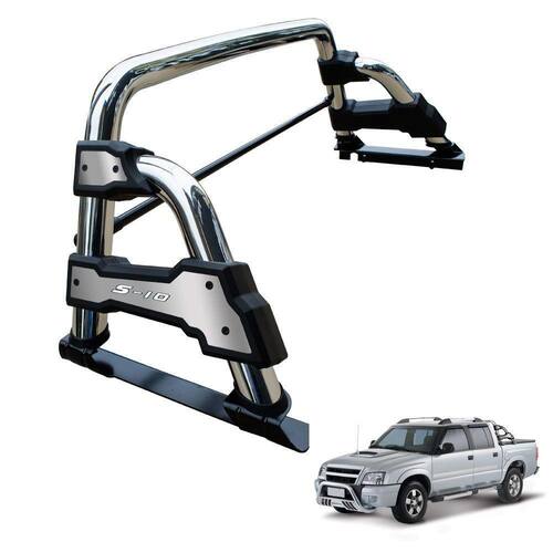 Por ser fabricado em aço o produto não enferruja, não perde o brilho e não descasca com o tempo. Ideal para S10 modelo 1996 a 2011, esse santo Antônio esportivo acompanha acabamentos laterais em preto com acabamento cromado e adesivos com o nome do veículo em alto relevo que completam o visual da peça.