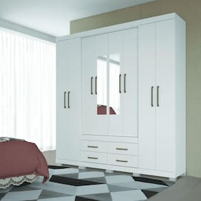 Guarda-Roupa Casal Santos Andirá Guarapuava com 6 Portas, 4 Gavetas e 6 Prateleiras - 194,4cm de largura