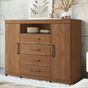Cômoda Santos Andirá Pinhais com 2 Portas, 4 Gavetas, 1 Prateleira e 1 Cabideiro - 130,2cm de largura