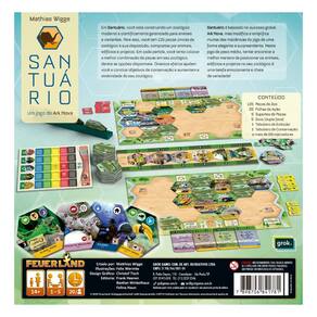 Santuário é baseado no sucesso global Ark Nova, mas modifica e simplifica muitas das mecânicas do jogo de uma forma elegante e surpreendente. Neste jogo de peso médio, tentar encontrar a melhor maneira de posicionar os animais, edifícios e projetos no seu zoológico é uma tarefa emocionante e cheia de variedade!