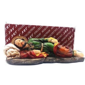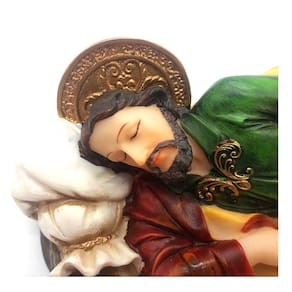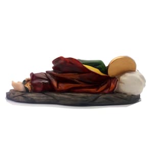 - Imagem São Jose Dormindo. - Resina alta qualidade. - Pintura a mão. - Acabamento rico em detalhes. - Comprimento: 22 cm. - Largura: 10 cm. - Altura: 7 cm