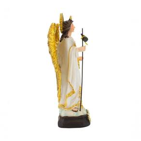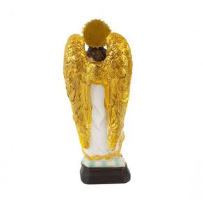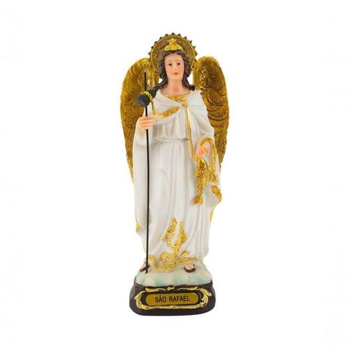 Enfeite decorativo na imagem do arcanjo São Rafael de 13,5 cm de altura. Cores realista. Material: resina