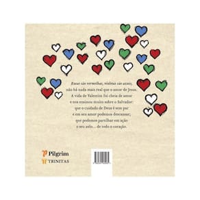 Rosas são vermelhas, violetas são azuis, não há nada mais real que o amor de Jesus. A vida de Valentim foi cheia de amor e nos ensinou muito sobre o Salvador: que o cuidado de Deus é sem par e em seu amor podemos descansar; que podemos partilhar em ação o seu zelo… de todo o coração. Não sabemos muito sobre o verdadeiro São Valentim, exceto por uma coleção de histórias associadas ao seu nome. Todas essas histórias, contudo, ilustram uma vida de bondade e amor — amor que vai além das típicas imagens de romance celebradas no Dia de São Valentim. Acredita-se que São Valentim nasceu por volta de 226 d.C., e que passou a vida cuidando dos pobres, curando os enfermos e levando outros a Jesus. Uma história diz que, após Valentim restaurar a visão da filha de um juiz, este quebrou todos os ídolos ao redor de sua casa e foi batizado junto com sua família e servos — mais de quarenta pessoas! Honramos o legado de São Valentim em 14 de fevereiro porque esse é o dia em que ele foi martirizado por sua fé. Diz-se que, no dia em que seria executado, Valentim enviou uma carta para a garota cuja visão havia restaurado e assinou como “Seu Valentim”. Ao longo deste livro, você notará corações de diferentes cores ilustrando os diferentes tipos de amor que foram primeiramente descritos pelos gregos antigos. Os corações vermelhos representam o amor romântico (eros), os corações verdes representam o amor natural, como o amor de um pai por um filho (storge), os corações azuis representam o amor de amigos próximos (philia), e os corações brancos representam o amor puro e incondicional (agape). Ao ler este livro com outras pessoas, considere como as histórias de São Valentim ilustram esses quatro tipos de amor. Você também pode identificar áreas em que esses quatro amores se manifestam na sua própria vida! Esse último tipo de amor — agape — é bastante utilizado na Bíblia, porque descreve a bondade amorosa que Deus tem por nós: pura e incondicional. Na verdade, este amor extravagante que Deus tem por nós é também o amor que podemos ter por Deus e o amor que somos chamados a ter pelo nosso próximo. São Valentim passou sua vida amando os outros porque sabia que era amado por Deus. No Dia de São Valentim, e em todos os dias do ano, espero que a vida de Valentim nos seja um lembrete para nos amarmos uns aos outros — como amigos, como família e como seguidores de Jesus. Marca: Não Informado