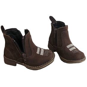 Este modelinho de calçado infantil para meninos está super em alta! Fechamento relâmpago na lateral da bota permite que a criança calce a botina sozinho,