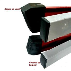 Jogo de sapatas para escada ZEUS modelos 8050, 8055 e 8056. Composto por: 4 ponteiras de PVC de embutir para o lance extensível cinza não / de boa qualidade 4 sapatas de vestir para o lance fixo vermelho As sapatas de vestir deverão ser fixadas com um rebite não incluso