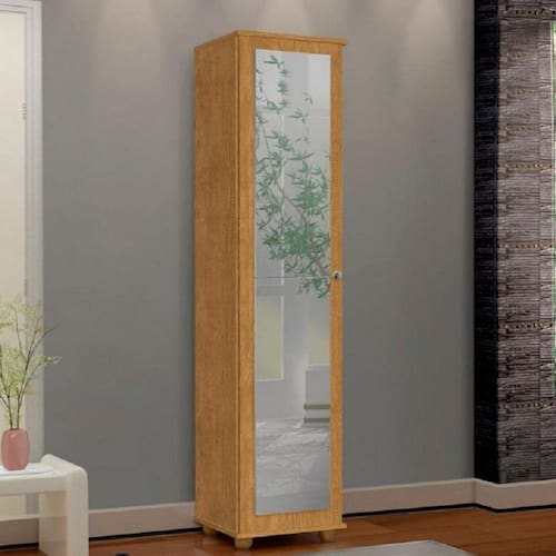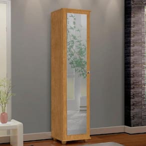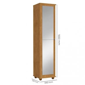 Características: 1 Porta 4 Prateleiras Estrutura MDP Pintura UV Acabamento Verniz Puxador inox Pés plásticos Espelho colado na porta