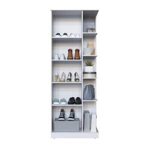 Depende do tamanho dos calçados, mas em média, o móvel comporta de 12 a 15 pares, distribuídos entre as prateleiras internas e externas.