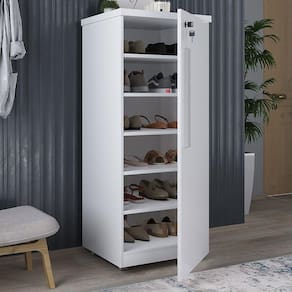 * Imagens meramente ilustrativas. Sapateira linda com tampo reforçado de 30 mm de espessura: além de bonita é bem resistente, serve como armário multi-uso, organizador. Tem rodinhas que facilitam a sua movimentação, possui 5 prateleiras e fechadura na porta. -5 prateleiras internas e muito espaço para armazenar seus calçados; - Fechadura na porta; - Puxador grande e resistente - Chapa de MDP 15mm de espessura; - Rodízios embutidos com chapa de ferro; - Tampo de 30mm de espessura. Dimensões do produto montado: altura 113 cm largura 48 cm profundidade 44 cm Produto entregue desmontado. Acompanha manual de montagem que também está disponível em nosso site, assim como o vídeo da montagem no Youtube. Atenção: Não nos responsabilizamos, no ato da entrega, por desmontagens, subir escadas/elevadores ou transporte por guincho para apartamentos. Eventuais despesas são de responsabilidade do cliente. Confira as dimensões deste produto e certifique-se de que o mesmo passará normalmente por supostos elevadores, portas, escadas e/ou corredores de sua moradia.