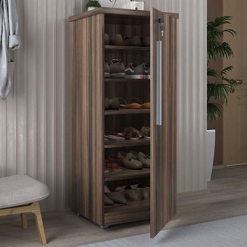 * Imagens meramente ilustrativas. Sapateira linda com tampo reforçado de 30 mm de espessura: além de bonita é bem resistente, serve como armário multi-uso, organizador. Tem rodinhas que facilitam a sua movimentação, possui 5 prateleiras e fechadura na porta. -5 prateleiras internas e muito espaço para armazenar seus calçados; - Fechadura na porta; - Puxador grande e resistente - Chapa de MDP 15mm de espessura; - Rodízios embutidos com chapa de ferro; - Tampo de 30mm de espessura. Dimensões do produto montado: altura 113 cm largura 48 cm profundidade 44 cm Produto entregue desmontado. Acompanha manual de montagem que também está disponível em nosso site, assim como o vídeo da montagem no Youtube Atenção: Não nos responsabilizamos, no ato da entrega, por desmontagens, subir escadas/elevadores ou transporte por guincho para apartamentos. Eventuais despesas são de responsabilidade do cliente. Confira as dimensões deste produto e certifique-se de que o mesmo passará normalmente por supostos elevadores, portas, escadas e/ou corredores de sua moradia.