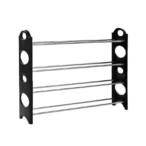 Sapateira 12 Pares Grande Expansível Empilhável 4 Prateleiras Alumínio Desmontável Organizador Preto
