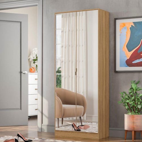 A Sapateira Grife da Demóbile é um produto que embeleza e amplia o ambiente devido à grande área de espelhos das duas portas. Possui inda prateleiras ideais para acomodação de vários pares de sapatos além de uma gaveta interna para pequenos pertences com deslize em corrediça telescópica. Puxadores discretos em alumínio.
