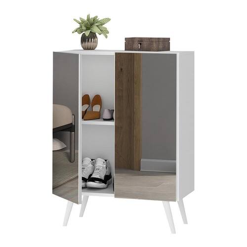 Sapateira 2 Portas Retrô com Espelho Nina Multimóveis V6012 - Branco