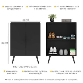 A Sapateira 2 Portas Retrô Nina Multimóveis é produzida em MDP com acabamento acetinado (cerca de 20% de brilho), que garante maior durabilidade, facilidade na limpeza, além de um acabamento superior. Com 2 portas, possui um excelente espaço interno para acomodar seus sapatos e demais pertences (a prateleira interna suporta 8 Kg e o tampo 9 Kg). Os pés retrô, em polipropileno, dão um charme especial ao móvel deixando-o com um visual leve e permitindo você compor um ambiente com ar vintage e moderno ao mesmo tempo. Compacta, é uma excelente opção para otimizar seu ambiente, para que você possa aproveitá-lo da melhor maneira possível.