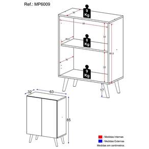Dimensões do produto montado: Altura: 85cm | Largura: 63cm | Profundidade: 32cm *Você pode consultar as medidas internas na imagem técnica do produto.